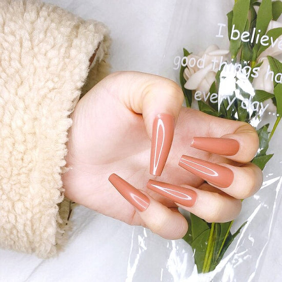 Ces faux ongles couleurs automne en acrylique sont très solides et ne cassent pas facilement. Vous pourrez donc sublier vos vrais ongles longtemps sans crainte. Grâce à leur longueur et leur coupe carrée ils sont très visibles ce qui fait que personne ne pourra les louper.
